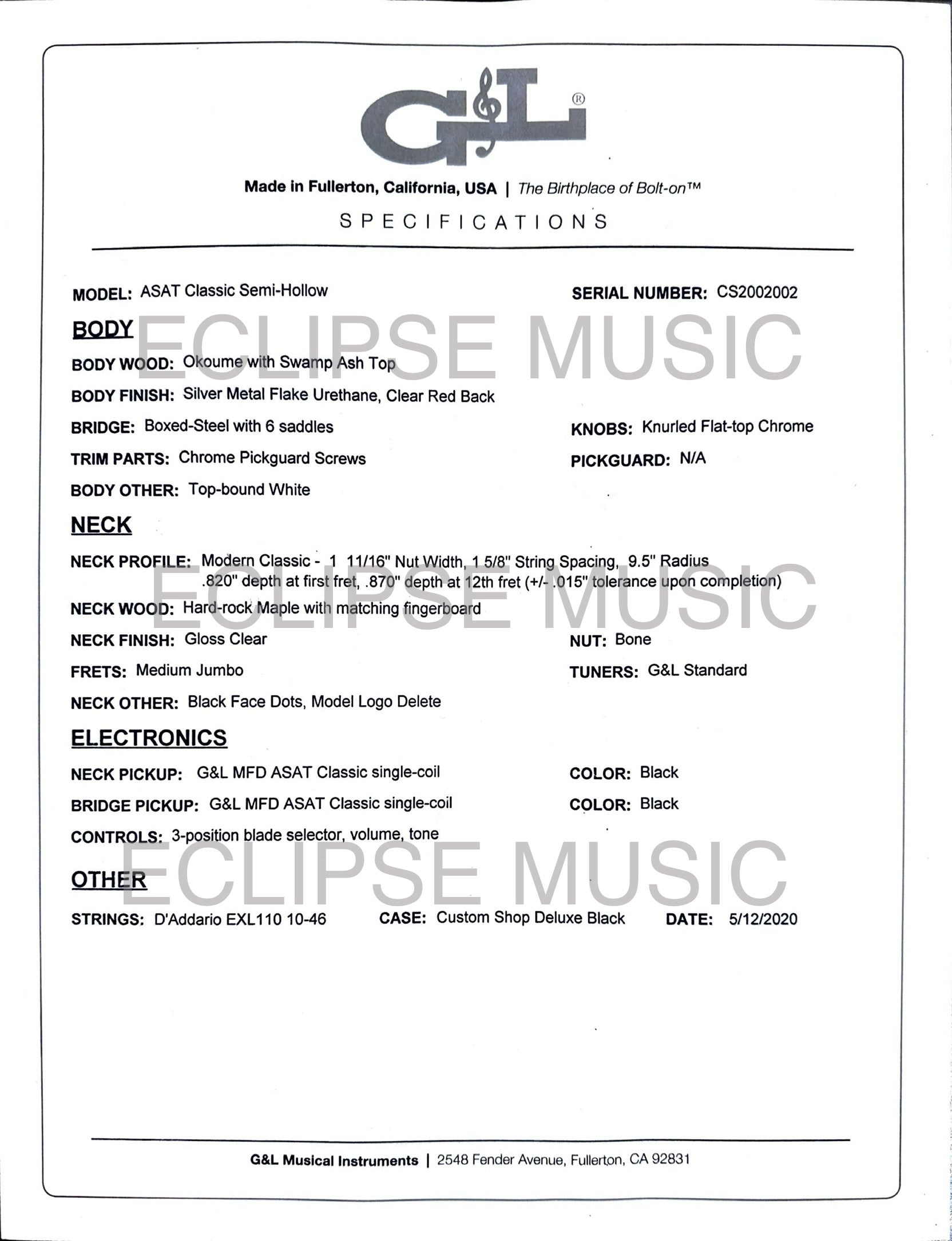 - INCLUDES: G&L CUSTOM SHOP Deluxe Tolex Case