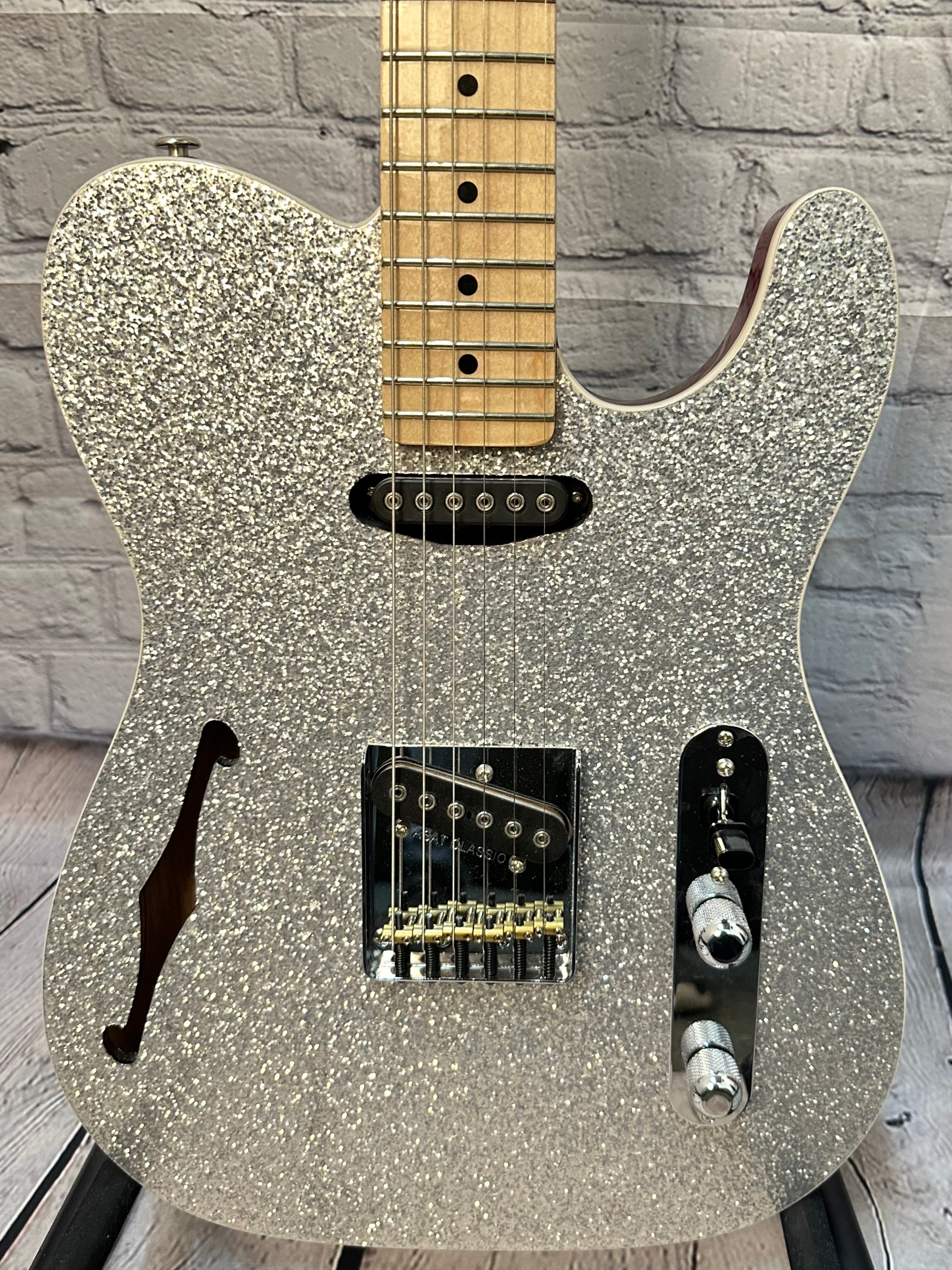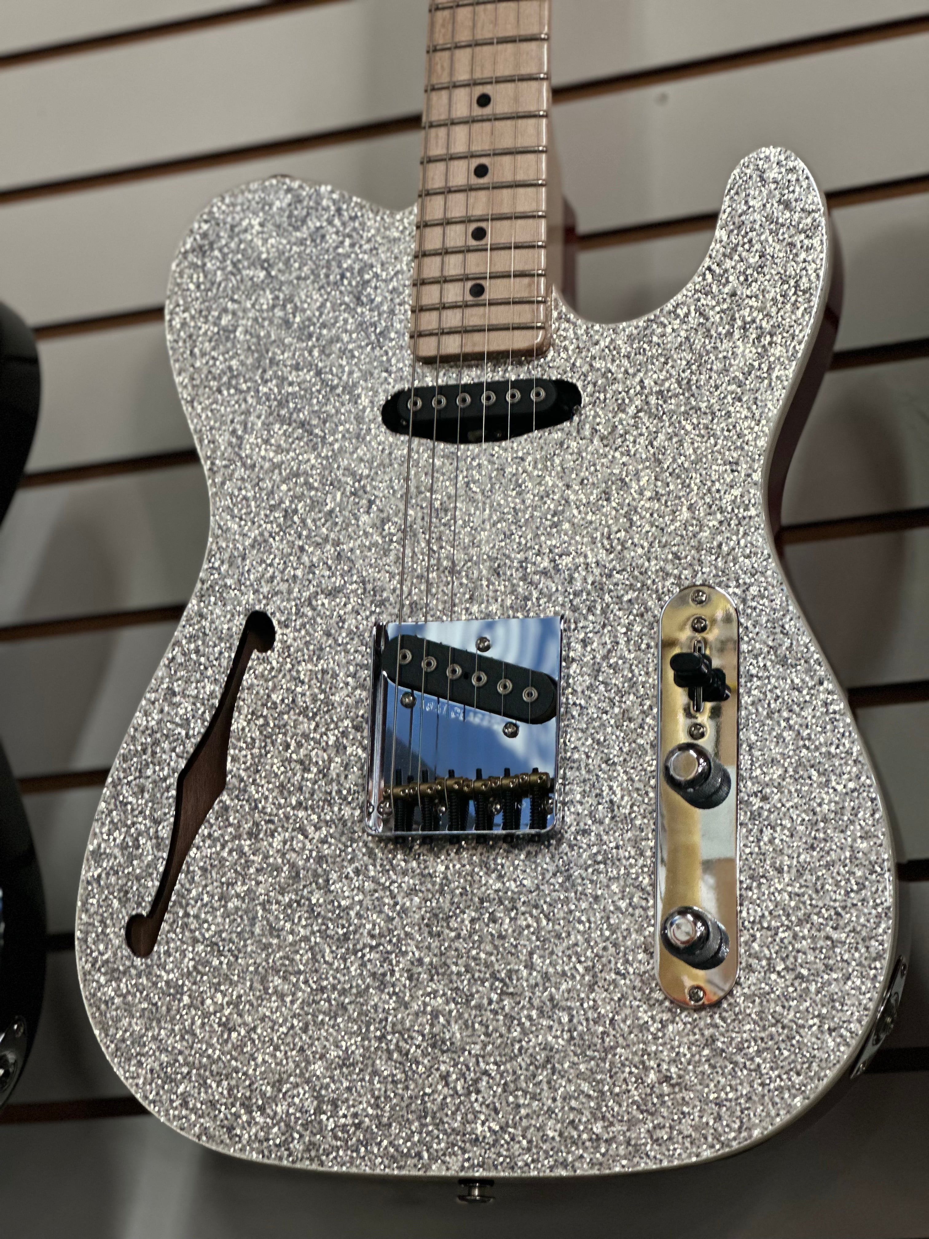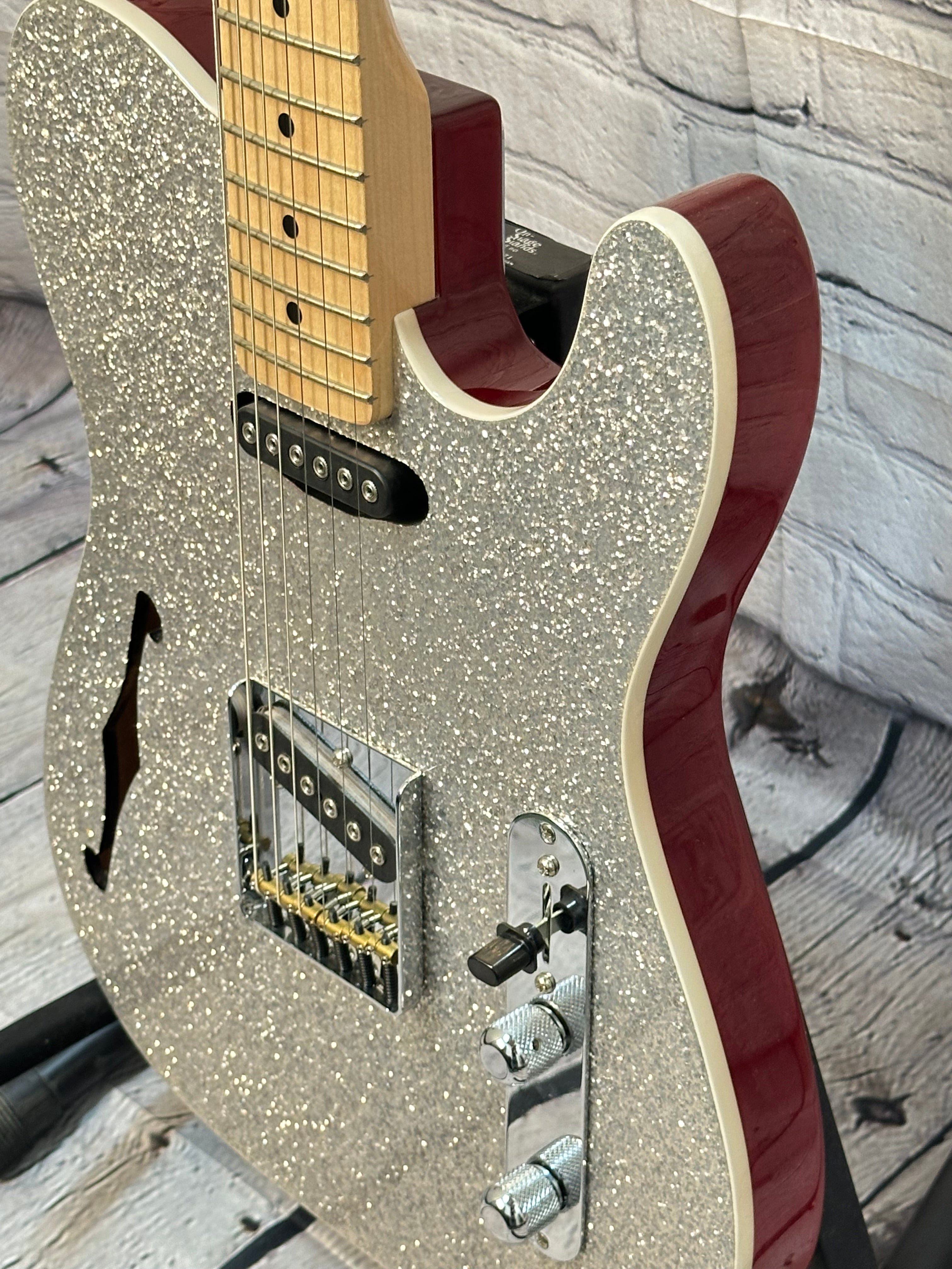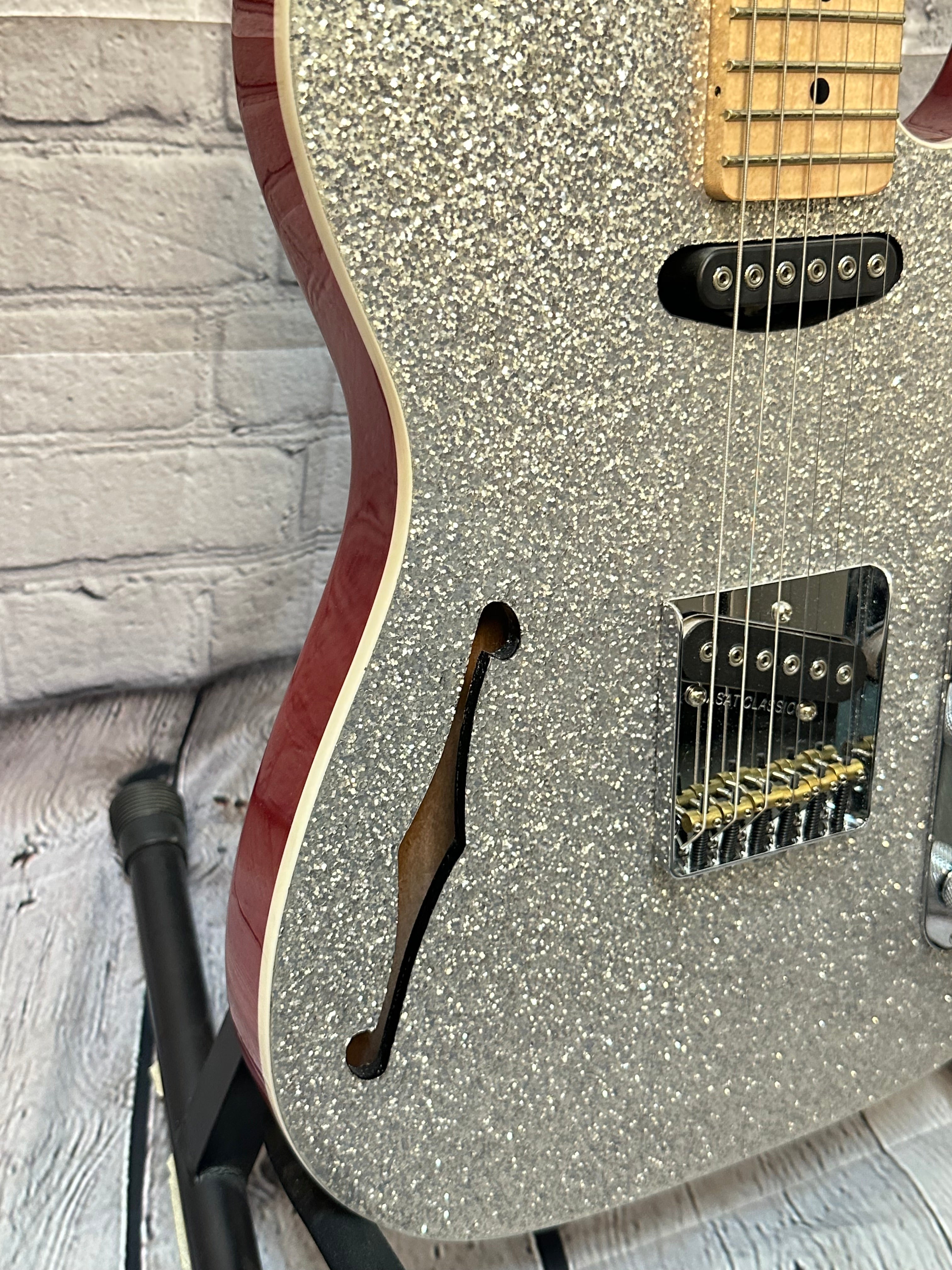 G&L USA Custom Shop ASAT Classic - Silver Metallic Flake/Clear Red Semihollow w/case