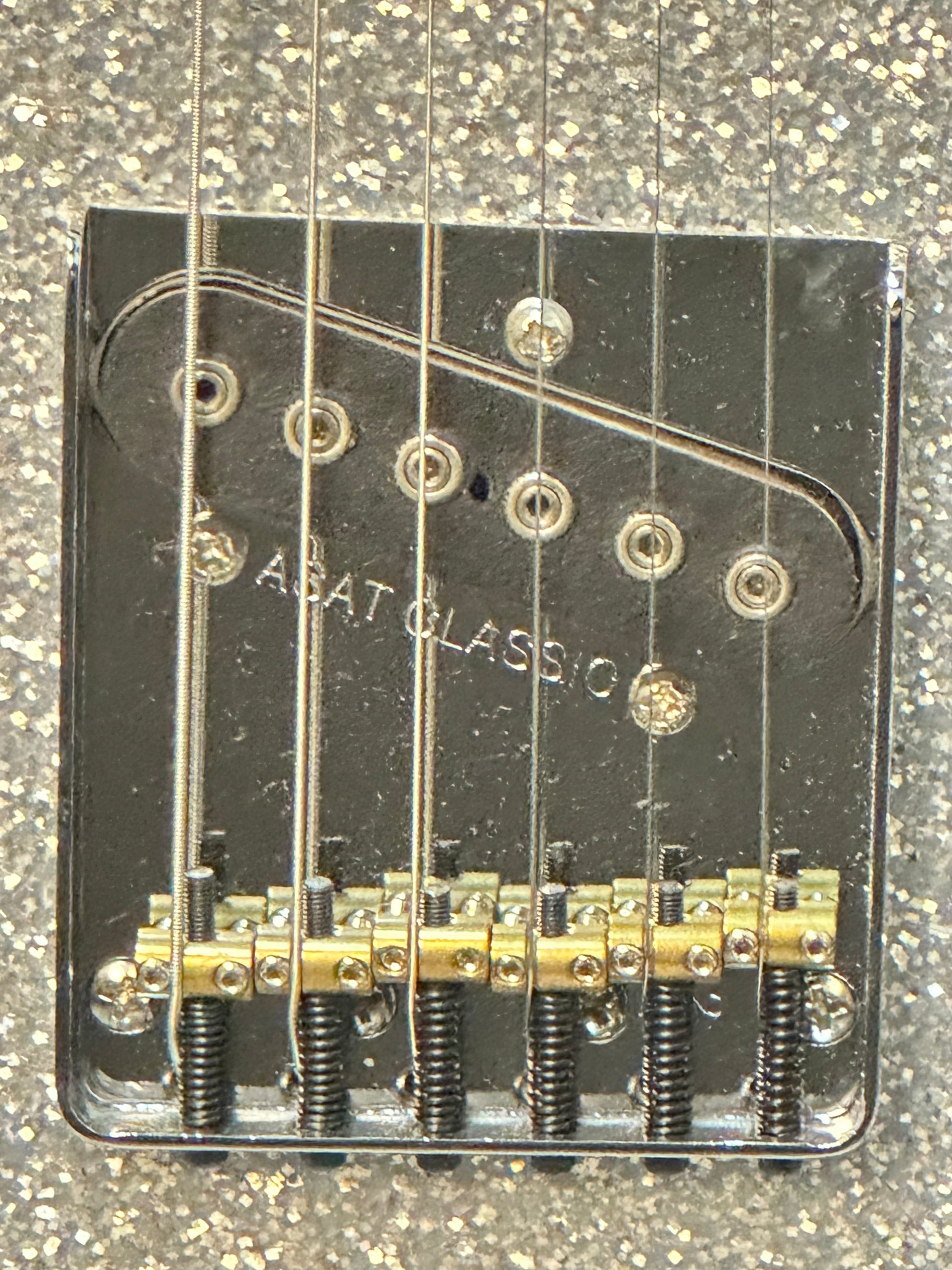 - BRIDGE: traditional boxed-steel bridge with individual brass saddles