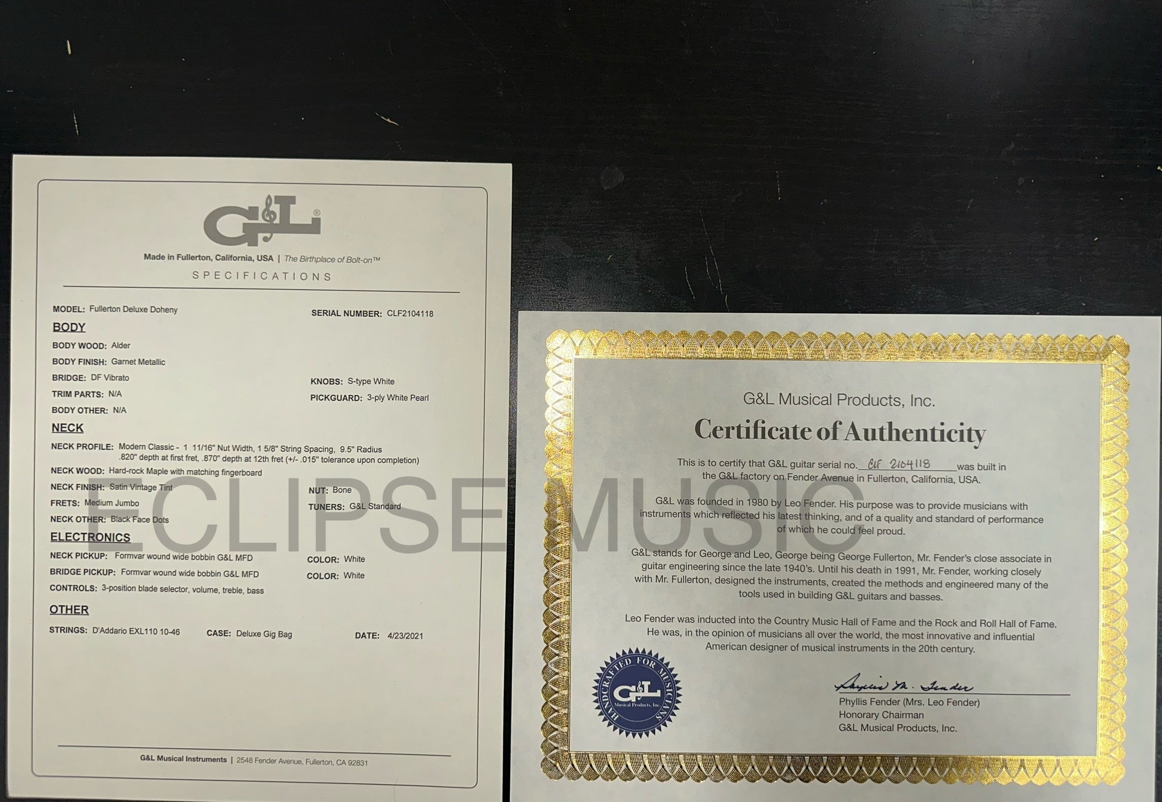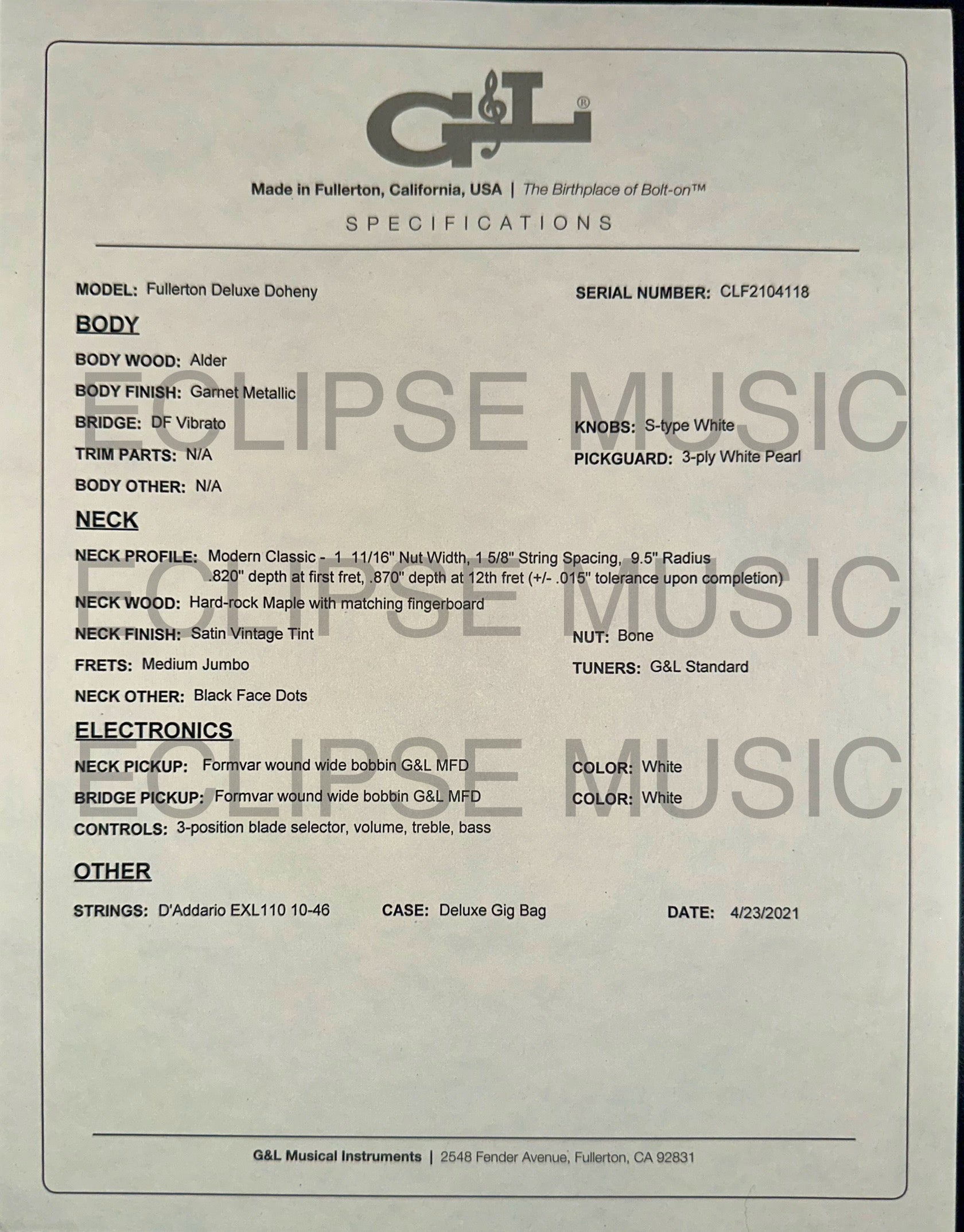 G&L USA Special Order (test color) Fullerton Deluxe Doheny- Garnet Metallic w/bag