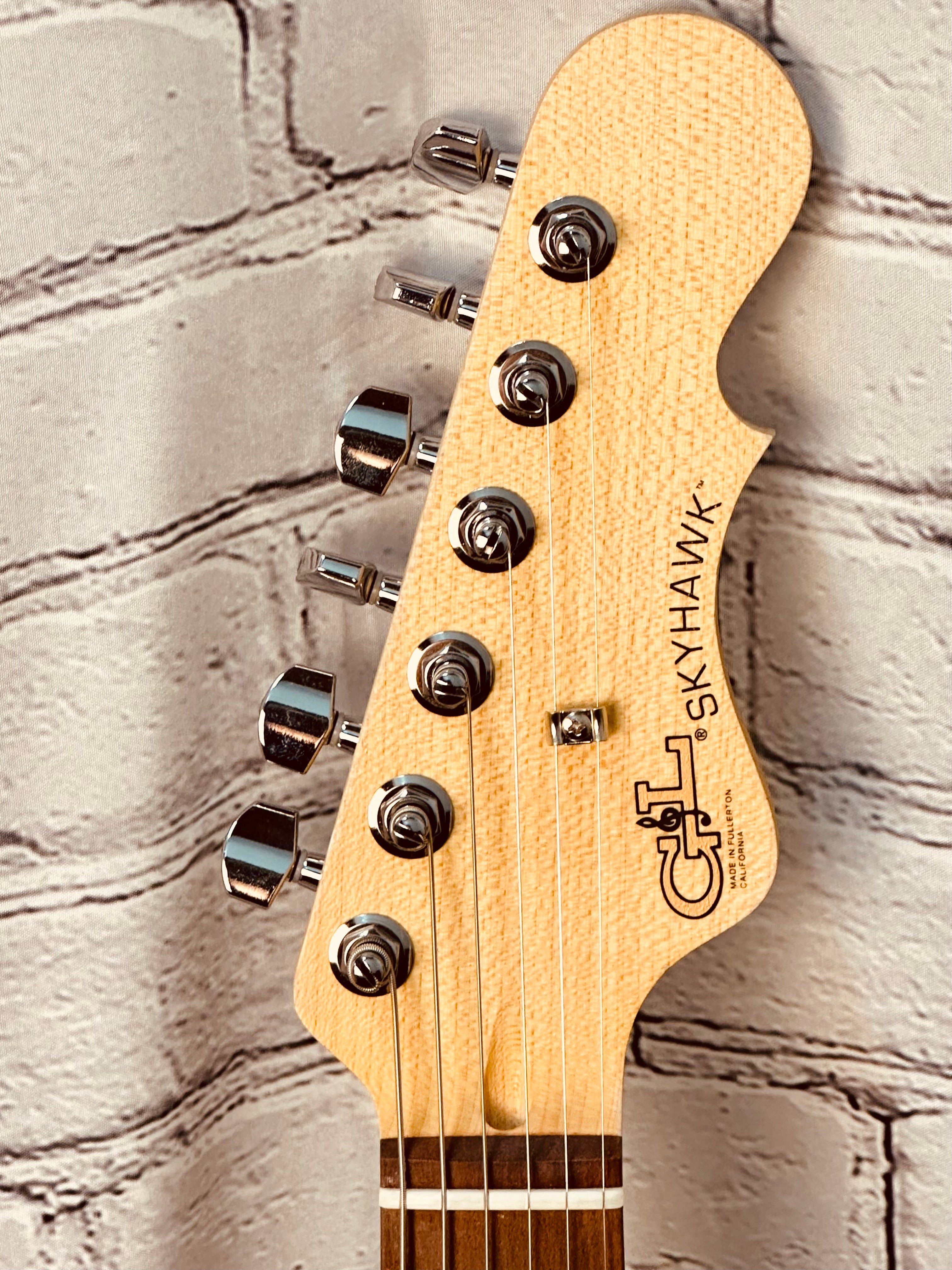 The G&L Fullerton Deluxe Skyhawk delivers classic covered-bucker tones kicked up a notch with pairing of an AS4255C in the neck position and an AW4368C at the bridge. That’s ASAT Deluxe territory, but the Skyhawk HH adds the PTB System which allows bass roll-off, a big advantage in high gain situations like cranked fuzz pedals. Plus, the push/pull coil tap serves up convincing single coil tones that further expand the potential of this versatile axe. The Fullerton Deluxe Skyhawk HH also features a Dual-Fulcrum vibrato, a work of engineering art which allows bending up or down with unsurpassed stability, while offering a silky feel through its beefy aluminum vibrato arm.
