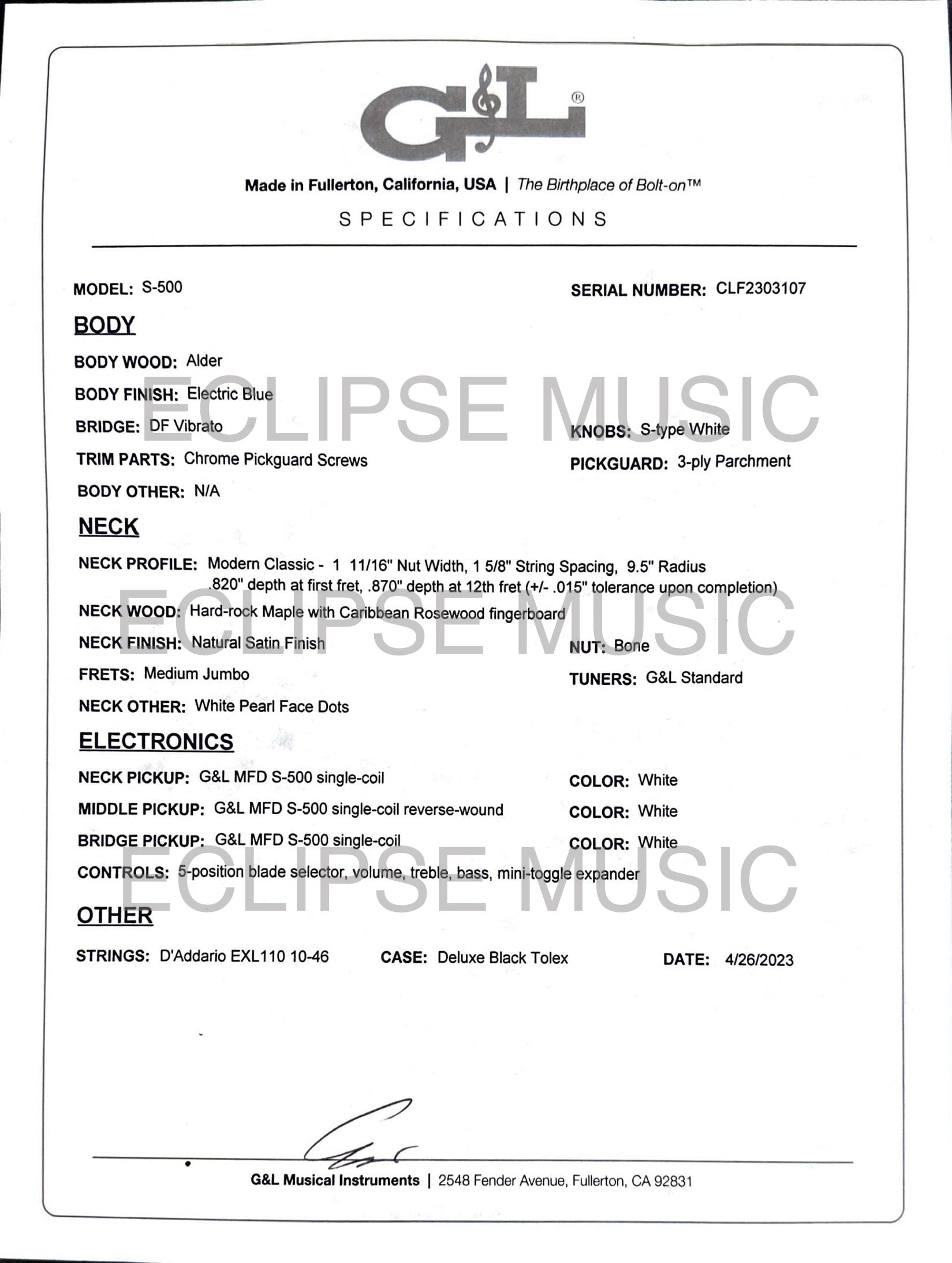 • INCLUDES: G&L Deluxe Black Tolex Case