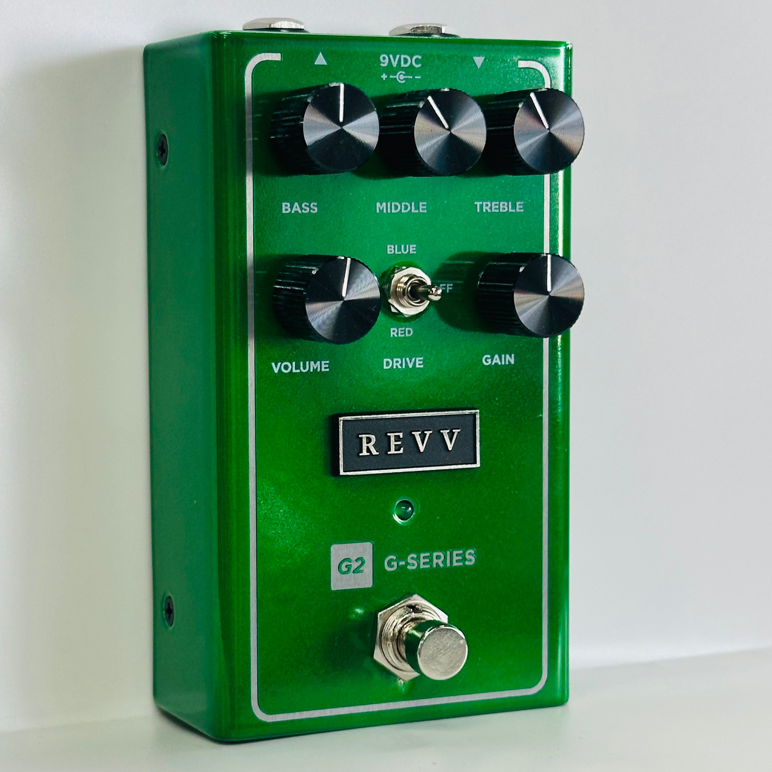 The Revv G2 was developed alongside Nashville's premier session guitarists to achieve a wide variety of touch-sensitive edge-of-breakup & transparent crunch tones that satisfy the needs of the most demanding players. This brand-new V2 circuit revision carefully tweaked the bloom, sustain, & sag of notes for a true classic character across all gain ranges.