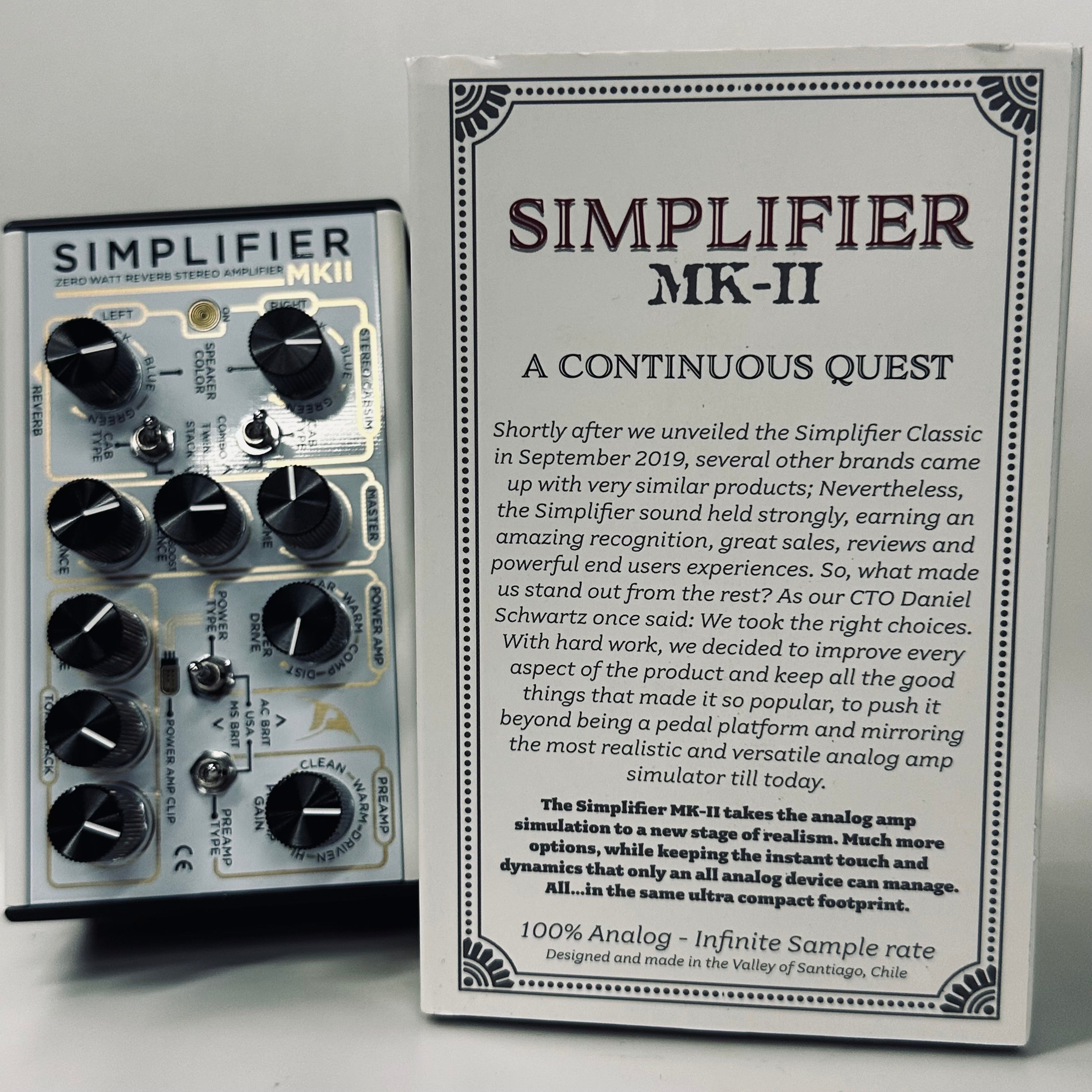 The Simplifier MK-II takes the analog amp simulation to a new stage of realism. Much more options, while keeping the instant touch and dynamics that only an all analog device can manage.