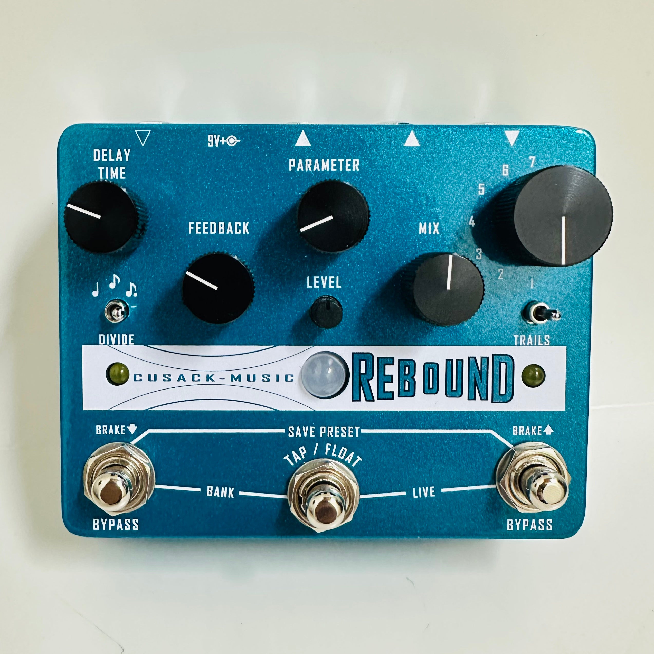 Rebound is a Multi-Program Delay. it features an expression pedal input, tap tempo, dedicated Left and Right output, Brake controls, a hold feature (Float), and 8 stand-alone delay programs. The Preset switching system allows you to cycle through banks completely hands free. Between its expressive controls and wide array of delay programs, you can freely create delay sounds that will inspire you. It can be your main delay effect that lives at the heart of your pedal board, or it can be used with other delays to add new texture and expression to your favorite sounds. When we began engineering this product, we took into consideration that every player uses delay differently. Because of this, it excels at creating classic delay sounds as well as experimental soundscapes for ambient exploration. Regardless of how you use delay, this pedal makes it simple and exciting to create sound with.